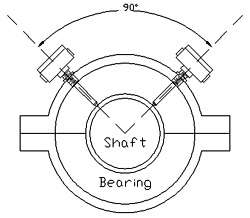 在更大,更關鍵的機器上,通常建議每個軸承使用兩(2)個接近探頭傳感器系統。此類安裝的探頭應彼此分開90°安裝。由于探針將測量其各自平面中的振動,因此將測量軸頸軸承內軸的總振動。當兩個接近探頭傳感器都連接到SKF-CM信息系統或示波器時,可以看到兩個振動信號的“軌道”或笛卡爾乘積。