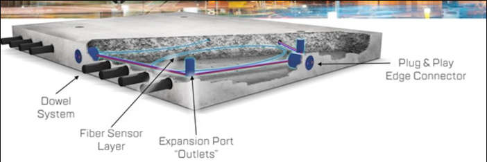 嵌入預制混凝土路面的光纖傳感器層利用蝕刻的光纖和入射光的失真來解釋有關其上方道路上發生的情況的數據。