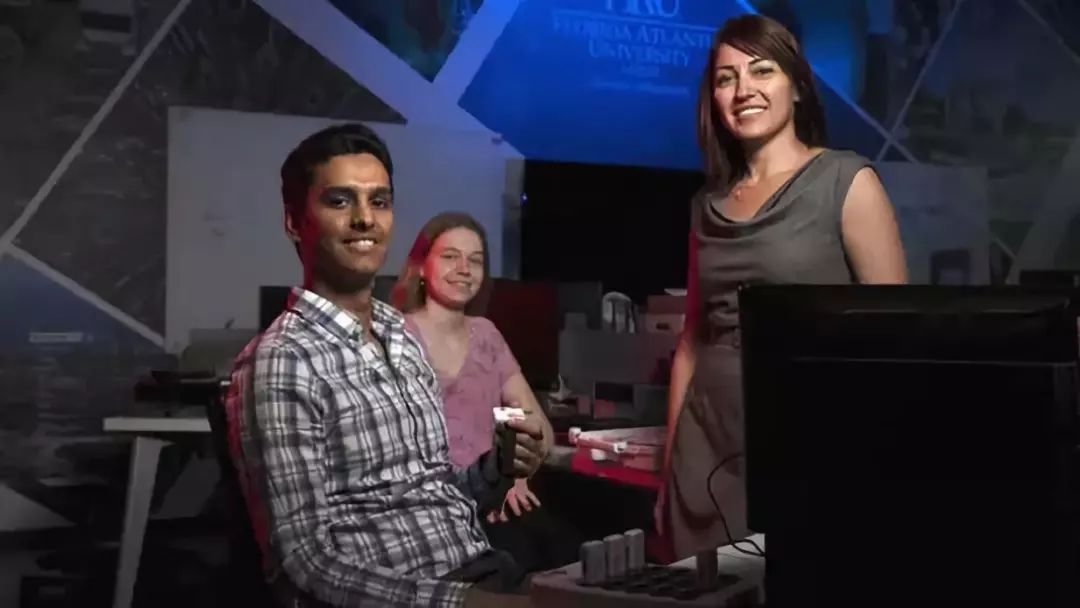 左起為博士生 Murtadha D. Hssayeni(手持傳感器),計算機科學專業的 Lillian Boettcher,以及 Behnaz Ghoraani 助教。(圖自:FAU / Alex Dolce 攝,via New Atlas)