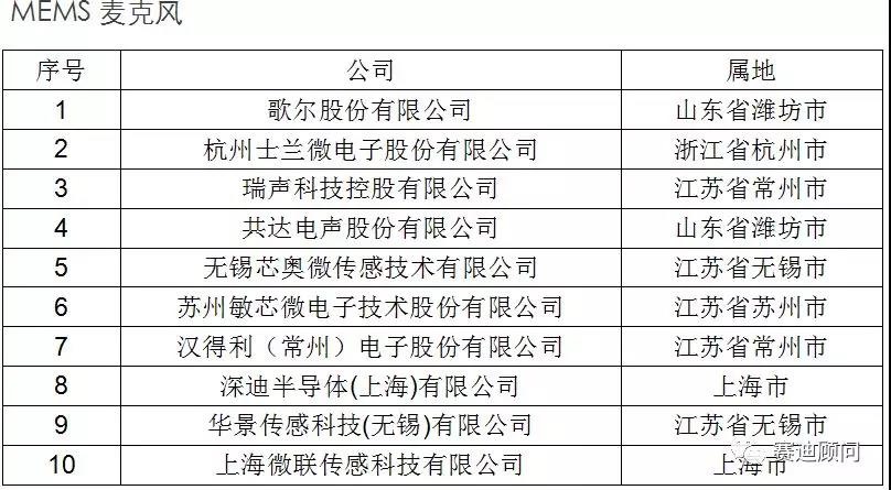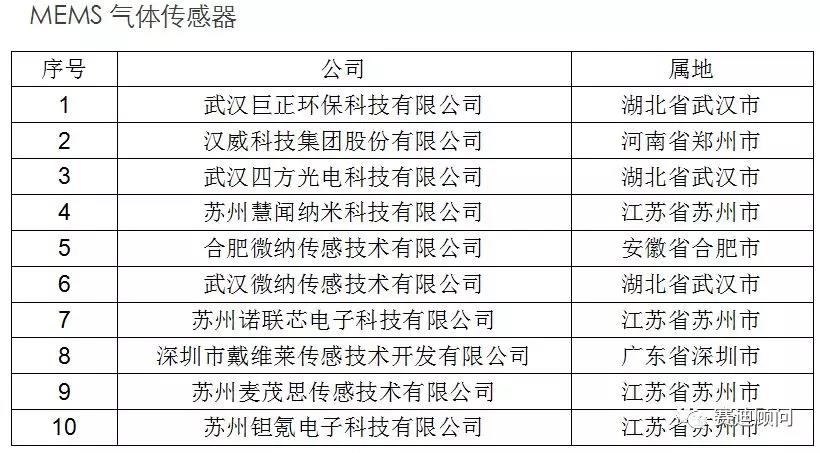 - 一覽2019年中國MEMS傳感器潛力市場細分領域企業代表
