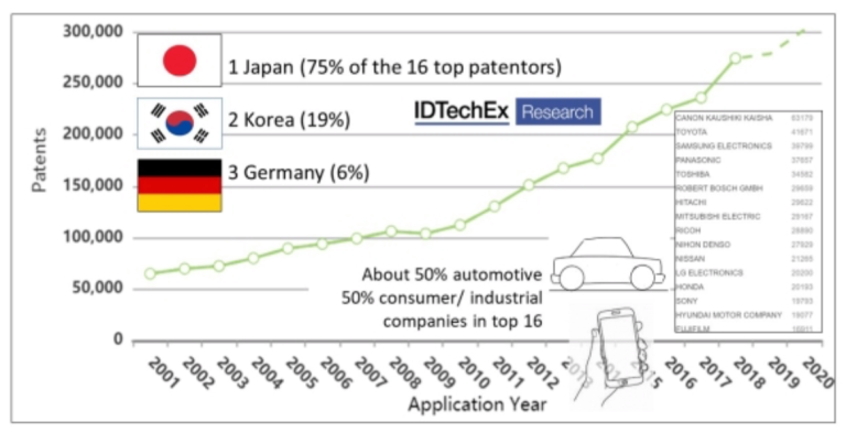 實際上,傳感器技術(shù)的創(chuàng)新正在發(fā)展。市場分析師估計,已針對汽車雷達,LiDAR,生物傳感器以及印刷和柔性傳感器等領域的應用授予了80多項新專利。日本名列前茅,占16個頂級專利接受國的四分之三。三星電子是前五名中唯一的非日本公司,依次為佳能,豐田,松下和東芝。