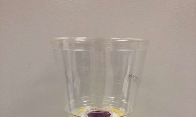 用于檢測牛奶中揮發(fā)性化合物的實(shí)驗(yàn)裝置,在液體上方可以看到粉紅色的納米顆粒。