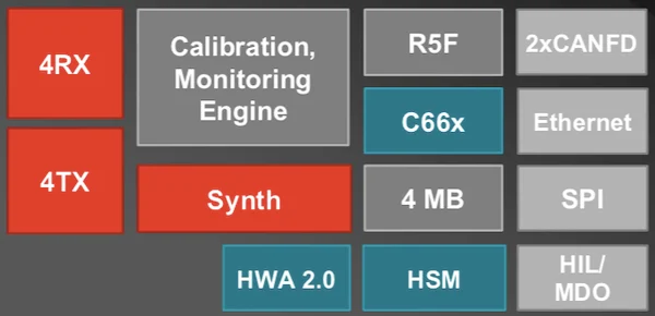 總之,一些重要的硬件產(chǎn)品包括 4 個 Rx 和 Tx 通道、一個雷達預處理硬件加速器塊、4 MB 片上存儲器以及一個內(nèi)置校準和監(jiān)控引擎。由于這些改進,TI 表示與市場上的其他解決方案相比,AWR2944 的雷達分辨率提高了 33%,雷達范圍增加了 40%。增加的雷達范圍歸因于基于多普勒分多址 (DDMA) 的信號處理,這提高了 SoC 從更遠的地方檢測迎面而來的車輛的能力。