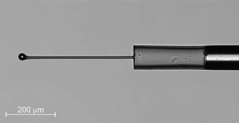 研究人員還使用微型力傳感器來測量細桿偏轉過程中的力。圖片來源:馬里博爾大學 Denis Donlagic
