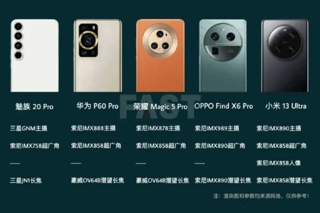 根據目前已經曝光的信息來看,下個月的手機圈貌似將會比本月更熱鬧,五款影像旗艦產品貌似都將會在3月發布,其中有可能包括華為P60 Pro、榮耀Magic5 Pro、OPPO Find X6 Pro、小米13 Ultra以及魅族20 Pro。根據爆料看,這五款旗艦機型有可能會配備包括三星和索尼在內的五種不同型號的主攝傳感器,并且回歸長焦鏡頭以及搭載高通第二代驍龍8處理器(有4G和5G版本的區別)。根據爆料我們匯總了疑似這五款機型的后攝參數,小伙伴們更看好誰呢?
