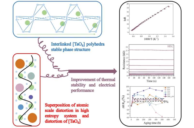 為解決這一問題,中國科學院新疆理化技術研究所(XTIPC)的研究團隊采用高熵策略開發出一種稀土鉭酸鹽(RETaO₄)熱敏陶瓷。他們的研究成果發表在《材料化學 A》期刊上。